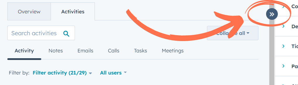 Once in the sidebar, it will show default HubSpot records such as companies and deals. You can change the order as needed by dragging and dropping each record. By default, Lucky Orange records will be listed near the bottom of the list until you modify the order.